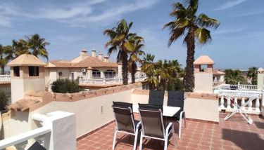 Schönes ruhiges Rooftop Apartment mit großer Dachterrasse situa-se em Torrevieja, a cerca de 8,2 km de Campo de Golfe Las Colinas e 4,9 km de Villamartin Plaza, e disponibiliza acomodações com acesso Wi-Fi gratuito, ar condicionado, uma piscina exterior e um terraço. Com vista da cidade, este alojamento dispõe de um pátio.