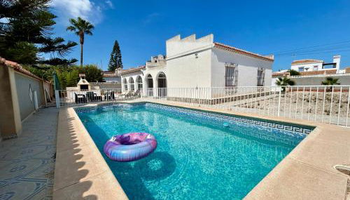 Villa with Pool, Chill-Out & BBQ situa-se em Torrevieja e fornece acomodações com piscina privada, varanda e vista do jardim. Situado a 1,9 km de Playa del Acequión, o alojamento dispõe de uma piscina exterior e estacionamento privado gratuito.