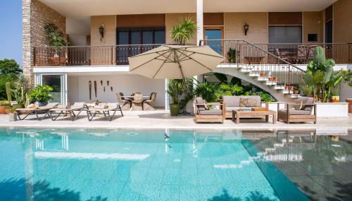 Em Tricase, a 49 km de Roca e 11 km de Caverna Zinzulusa, Villa Ametista - Teloni fornece acomodações com acesso Wi-Fi gratuito, ar condicionado, uma piscina exterior sazonal e um terraço. O alojamento tem uma piscina privada, jardim e estacionamento privado gratuito.