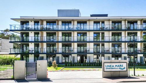 Linea Mare Apartments situa-se a 4 minutos a pé de Praia Mrzeżyno Wschód e dispõe de um terraço e acomodações com ar condicionado, varanda e acesso Wi-Fi gratuito. O estacionamento privado está disponível no local.