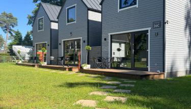 Szare Stodoły Domki situa-se em Mrzeżyno, na região de Zachodnio-Pomorskie, a 13 minutos a pé de Praia Mrzeżyno Wschód, e dispõe de acomodações com acesso Wi-Fi gratuito, um parque infantil, um jardim e estacionamento privado gratuito.