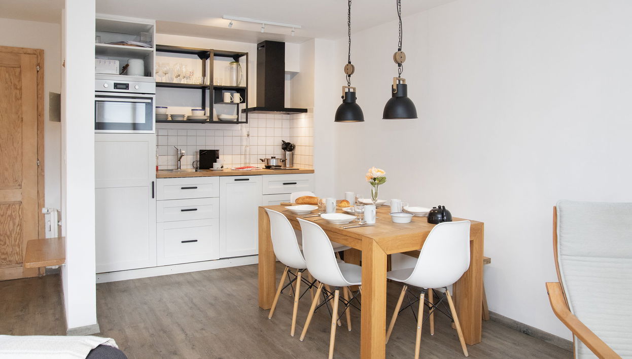 "Galaxie 110", apartamento de 2 assoalhadas 35 m2 no 1° andar. Luminoso, com mobiliário funcional e bonito: sala de estar/ sala de jantar com 1 sofá-cama duplo (1 x 160 cm, 200 cm de comprimento), TV a cabo, saída à varanda. 1 quarto com 1 cama dupla (2 x 90 cm, 200 cm de comprimento), saída à varanda. Kitchenette (Máquina de lavar loiçã 4 placas de vitrocerâmica, torradeira, chaleira, grelhador Raclete, conjunto de Fondue (conjunto de Fondue)). Duche/WC. Varanda pequena. Móveis de varanda. Vista bonita às montanhas. A moradia dispõe de: secador de cabelo. Internet (Sem fio/ Wireless LAN [WLAN], grátis). Por favor, a ter em conta: casa para não fumadores.