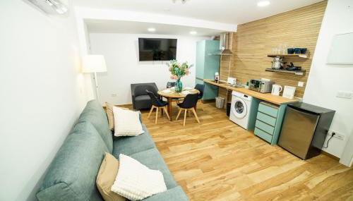 Este apartamento com 1 quarto dispõe de televisão de ecrã plano, ar condicionado e uma sala de estar.