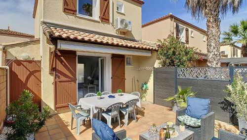 Apresentando vista do jardim, Maison "Havre de Paix" dans résidence avec piscine dispõe de acomodações com uma piscina exterior sazonal, um jardim e um terraço, a cerca de 9 minutos a pé de Praia de Farinette. Com estacionamento privado gratuito, o alojamento está a 10 km de Aqualand Cap d'Agde e 17 km de Mediterranee Stadium.