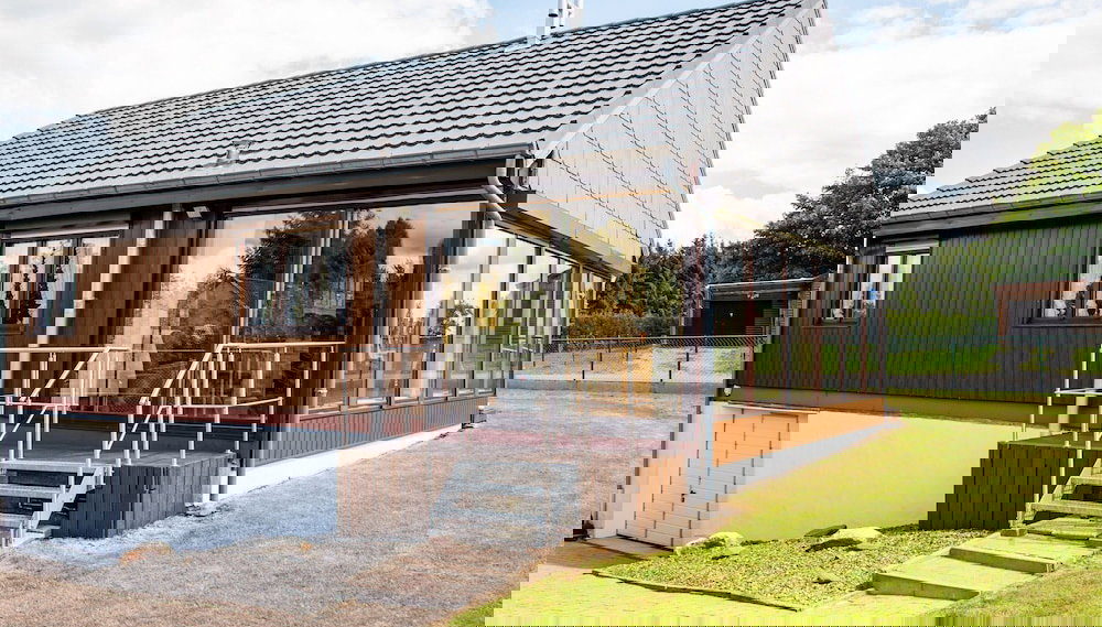 Sinta-se em casa nesta casa de férias com mobília individualizada e cozinha.