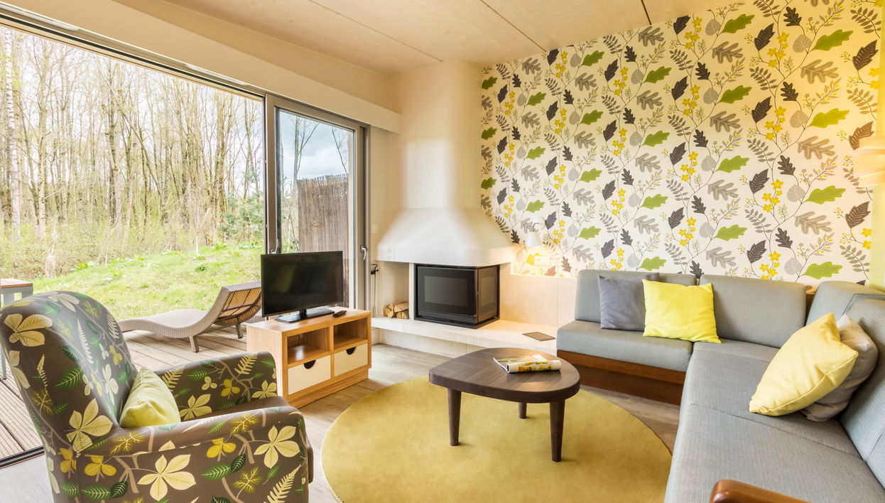"Cottage Premium", casa 3 assoalhadas 57 m2. Com mobiliário funcional e de estilo: sala de estar/ sala de jantar com janela panorâmica com TV (ecrã plano), saída ao terraço. 1 quarto com 1 cama dupla (160 cm, 200 cm de comprimento), TV.