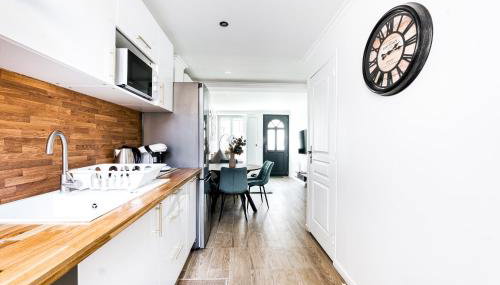 Esta casa de férias com ar condicionado tem 2 quartos, uma sala de estar, uma cozinha totalmente equipada com frigorífico e máquina de café, e 2 casas de banho com chuveiro e produtos de higiene pessoal gratuitos. Toalhas e roupa de cama são providenciadas nesta casa de férias.