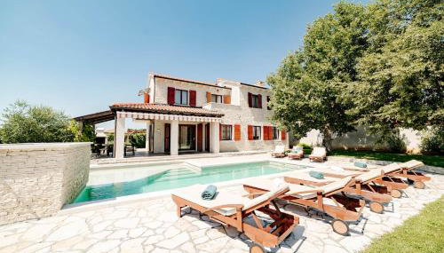 Em Višnjan, apenas a 22 km de Parque Aquático Istralandia, Villa Alma mit privatem Saltwater Pool fornece acomodações com uma piscina exterior, um jardim, um terraço e acesso Wi-Fi gratuito. Apresentando estacionamento privado gratuito, esta casa de férias está numa área onde os hóspedes podem desfrutar de atividades como caminhadas, mergulho e ciclismo.