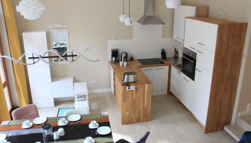 Ferienwohnung Quartier der Moderne situa-se em Veimar, a 3 minutos a pé de Museu Bauhaus de Weimar e 500 m de Estação Ferroviária de Weimar, e providencia acomodações com acesso Wi-Fi gratuito e uma televisão de ecrã plano.