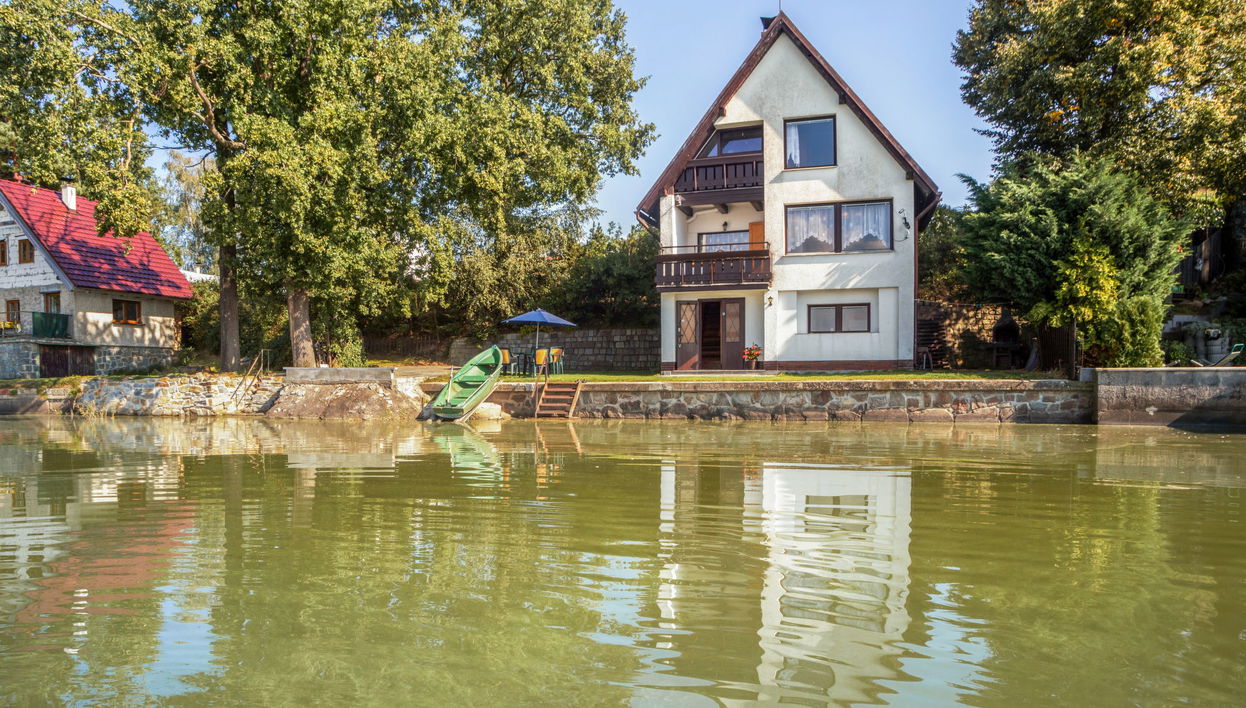 Chalé "Panorama", 400 m acima do nível do mar, de 4 andares, individual. A 500 m do centro de Dehtáře, nas redondezas Holašovice, a 15 km do centro de Hluboká nad Vltavou, lugar tranquilo, ensolarado, a beira do lago. Privado: terreno em estado natural 420 m2, jardim (não tem muro ou cerca) árvores, campina. Terraço, móveis de jardim, lugar para fogueira, pontão de natação, zona balnear. À disposição: canoa, barco. Acesso com veículo por caminho estreito durante 800 m. Estacionamento (para 2 carros) no mesmo terreno. Loja 1.5 km, supermercado 15 km, restaurante 1.5 km, bar ao ar livre 400 m, paragem de autocarros "Dehtáře" 500 m, estação de comboios "Netolice" 11 km, praia de areia 3 m, piscina 15 km, piscina coberta 15 km, lago "Dehtáře" 3 m. Campo de golfe (18 buracos) 15 km, trilhas de caminhada desde a casa, caminhos para bicicletas 10 m. Atrações nos arredores: UNESCO Holašovice 6 km, Hluboká nad Vltavou 15 km, České Budějovice 15 km, Dívčí kámen 18 km, Český Krumlov 36 km. Fácil acesso aos lagos mais famosos: Dehtáře 3 m.