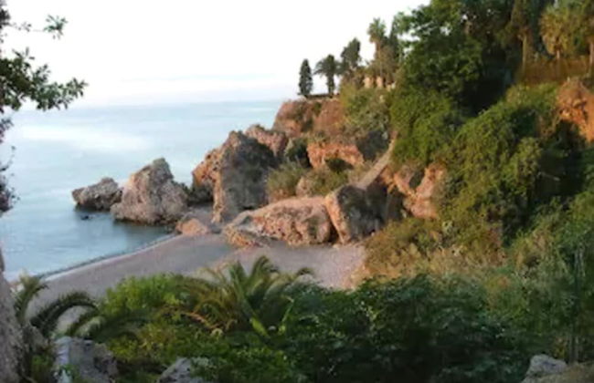 - Praia El salon -- Localizada à direita do Balcon de Europa, esta praia está escondida entre as palmeiras e belas arribas.