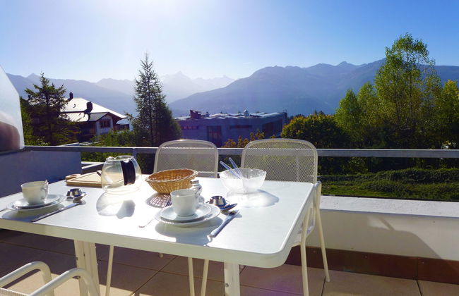 Apartamento de 1 quarto em Crans-Montana com piscina e terraço